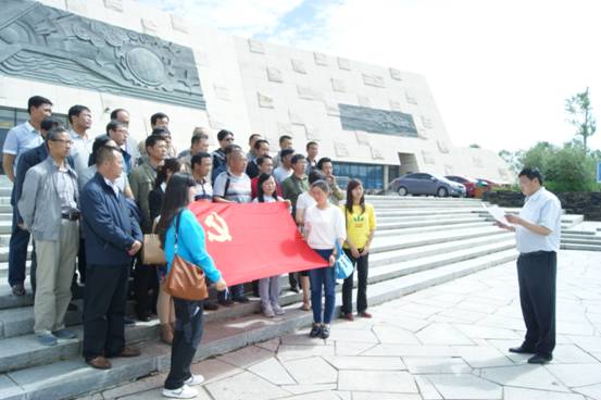 進(jìn)入展館區(qū)域,首先印入臉面的是展館東側(cè)一幅象征"聚"的雕塑,如長天利劍直刺云霄,給人一種格外醒目的提示,時時刻刻警示華夏兒女、炎黃子孫,凝聚才能產(chǎn)生無窮的力量,凝聚才能實現(xiàn)中華民族偉大復(fù)興的中國夢,這個"聚"也象征著"核聚變"產(chǎn)生的摧枯拉朽之巨大能量,不斷提升中國的國際形象。11:00時整,展館正面,公司黨員莊嚴(yán)的托舉起鮮紅黨旗,全體黨員干部緊密團結(jié)在一起,進(jìn)行愛國主義教育。"為黨旗爭光,為黨旗添彩",公司黨委書陳海龍為獲得省國資委系統(tǒng)優(yōu)秀黨員稱號的王兆明同志在這個特殊的日子里頒發(fā)證書、勛章,并激勵全體黨員向王兆明同志學(xué)習(xí),切實發(fā)揮先鋒模范作用,為公司"降本壓費、提質(zhì)增效、扭虧增盈"做出自己的努力和貢獻(xiàn)。