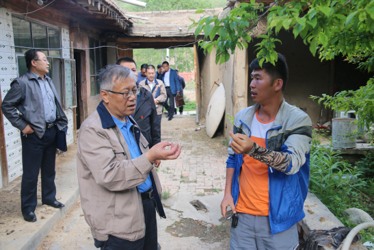 (圖為集團(tuán)公司黨委書(shū)記、董事長(zhǎng)王玉輝與草溝村村委書(shū)記在村民家中了解情況)