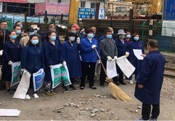 在三名黨支部書記的帶領(lǐng)下,黨員們分工明確、有條不紊,延鐵路專用線由南向北對積存垃圾、建筑垃圾、雜草進行清除。活動中,黨員們充分發(fā)揚不怕臟、不怕累的精神,有的掃地、有的撿拾垃圾、有的拔除雜草,呈現(xiàn)出一片熱火朝天的勞動景象。經(jīng)過一個多小時的勞動,鐵路專用線兩側(cè)垃圾得到徹底地清除。