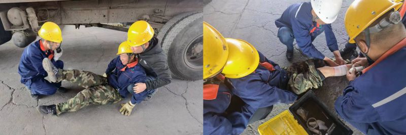 機(jī)械傷害是安全生產(chǎn)人身傷亡事故中最常見(jiàn)的事故類型,組織職工開(kāi)展應(yīng)急演練,是避免和減少此類事故發(fā)生的重要途徑。為確保此次演練取得預(yù)期效果,配送公司裝卸作業(yè)部提前制定方案,成立安全小組,明確職責(zé)分工,并組織參演人員進(jìn)行演練前培訓(xùn),細(xì)化各環(huán)節(jié)步驟。此次演練模擬作業(yè)人員在庫(kù)區(qū)作業(yè)吊裝貨物時(shí),因自身麻痹大意導(dǎo)致被貨物撞擊致傷,造成機(jī)械傷害的場(chǎng)景。在警戒組、應(yīng)急救援組、檢查組、后勤保障組等各參演人員的密切協(xié)作下,圓滿完成了此次演練任務(wù)。