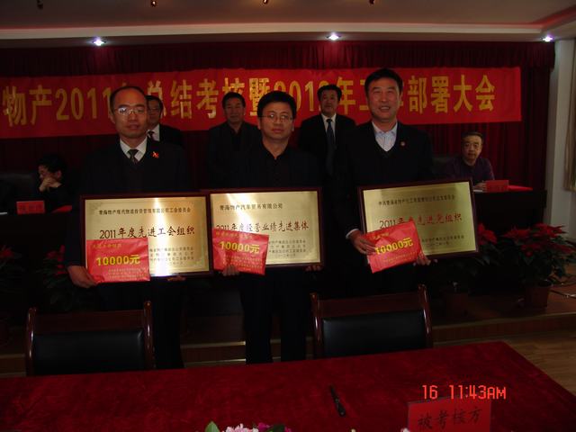 1月16日,集團(tuán)召開2011年工作總結(jié)考核暨2012年工作部署大會(huì),省國資委領(lǐng)導(dǎo)蒞臨大會(huì)、集團(tuán)領(lǐng)導(dǎo)、各公司領(lǐng)導(dǎo)班子、總部全體員工及2011年度先進(jìn)個(gè)人參加了會(huì)議。集團(tuán)總經(jīng)理王玉輝作了題為《奮楫圖治夯實(shí)基,敦行致遠(yuǎn)續(xù)新篇,在"十二五"科學(xué)發(fā)展的大道上闊步前進(jìn)》的工作報(bào)告,黨委書記白家林作了題為《融入中心創(chuàng)先進(jìn),提升發(fā)展?fàn)幭蠕h,大力推進(jìn)青海物產(chǎn)集團(tuán)科學(xué)發(fā)展新跨越》的黨委工作報(bào)告.會(huì)上通報(bào)了集團(tuán)2011年完成省國資委下達(dá)的經(jīng)營考核指標(biāo)情況及各公司主要工作成績和不足,對2012年工作任務(wù)及黨建工作進(jìn)行了安排部署。