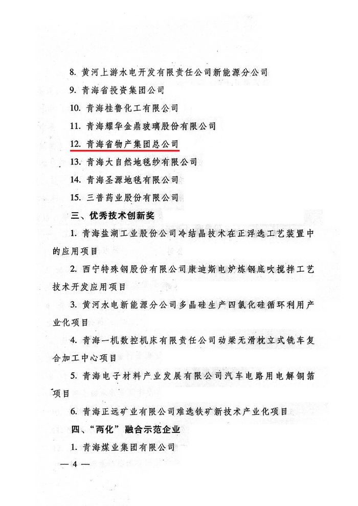 2012年,青海省物產(chǎn)集團總公司在省委、省政府及省國資委的大力支持和領導下,集團總公司按照全省工業(yè)經(jīng)濟總體部署和要求,著力推進工業(yè)項目建設,榮獲"2012年度工業(yè)投資貢獻獎"。